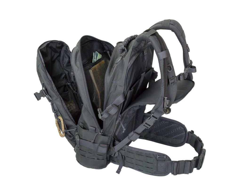 Laserem řezané MOLLE/PALS systémy na přední straně, bocích a bederním pásu umožňují bezproblémové rozšíření systému bez zvětšení profilu batohu. Horní rukojeť pro nošení je vyrobena z 5,5 metrů paracordu – připravena k rozbalení a použití v nouzových situacích.