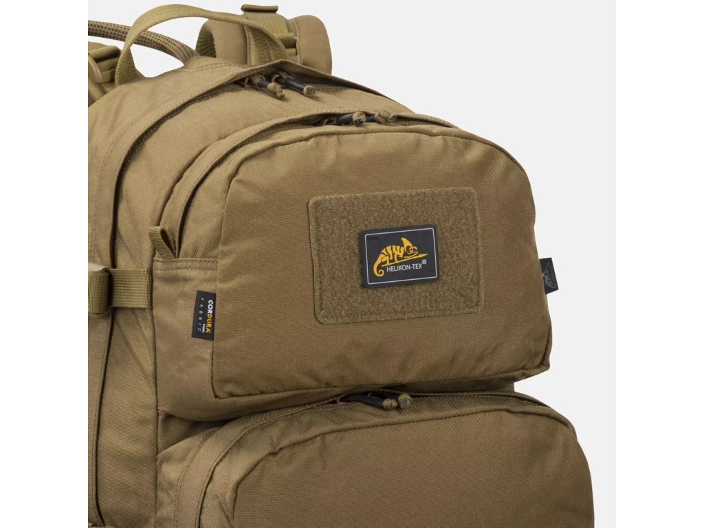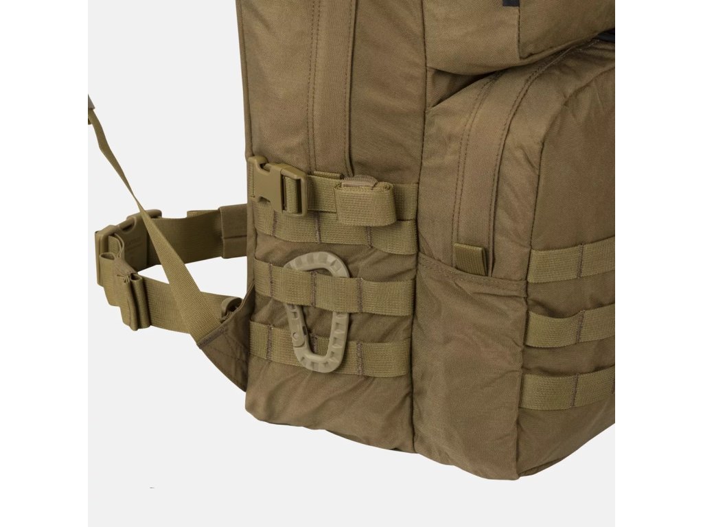 Popruhy MOLLE/PALS na přední a boční straně umožňují rozšířit batoh o další kapsy, lékárničku nebo nosiče nářadí. Kompresní popruhy stabilizují zátěž a lze je použít k zajištění podložky nebo dalšího vybavení.