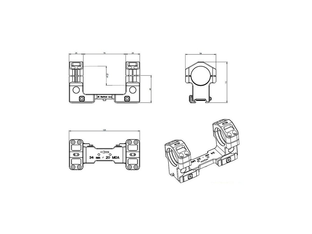 Základna je vyrobena z kvalitní duralové slitiny, se sklonem 20 MOA. Směr sklonu je na základně vyznačen.