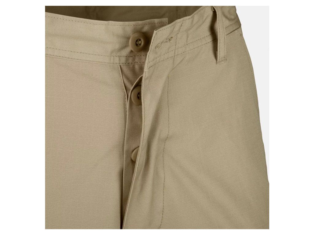 Kraťasy jsou vyrobeny z tkaniny RipStop, díky čemuž jsou odolné proti oděru. Další vrstva materiálu na hýždích poskytuje taktickým kraťasům ještě větší odolnost během misí v náročném terénu.