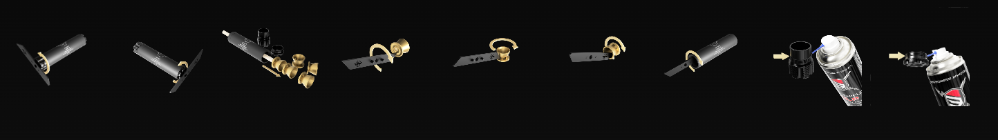 Všechny komponenty tlumiče jsou vyrobeny z kvalitního duralu, jehož povrch je opatřen tvrdým eloxem, což významně prodlužuje jeho životnost.