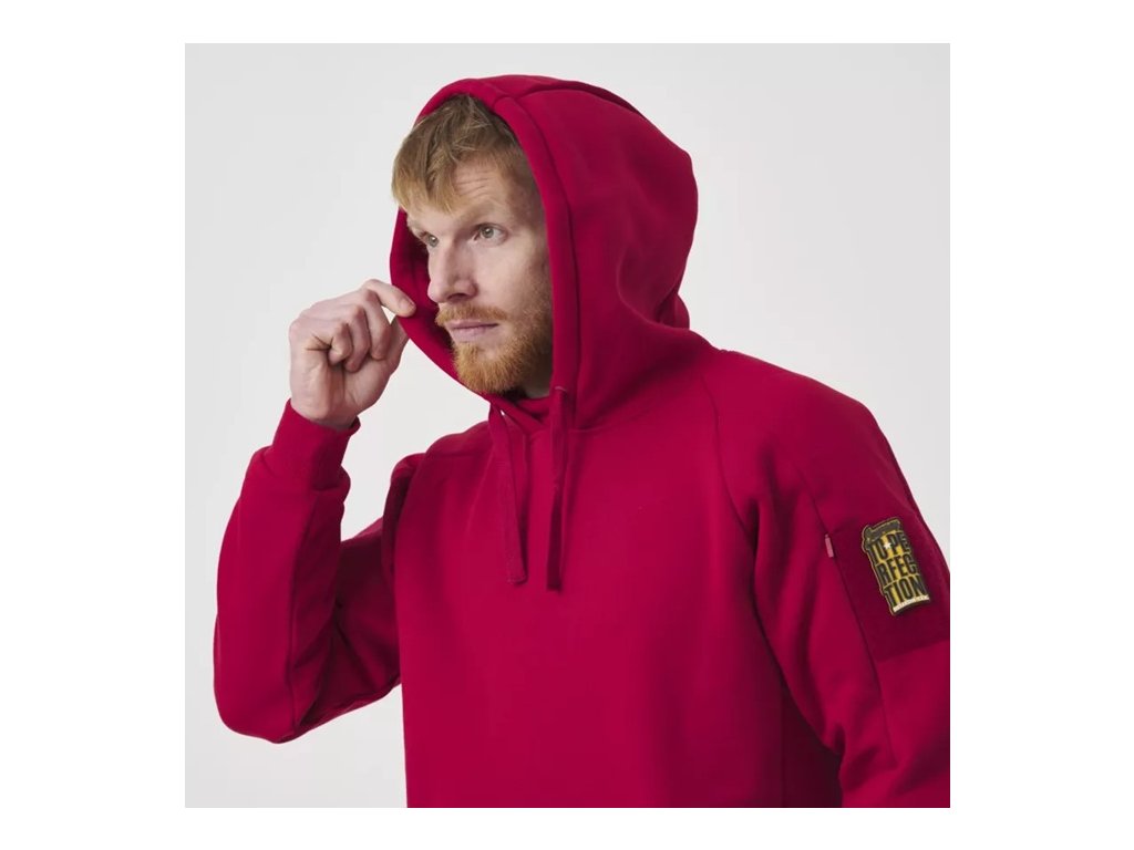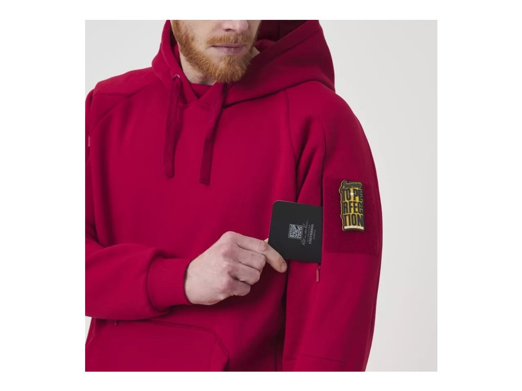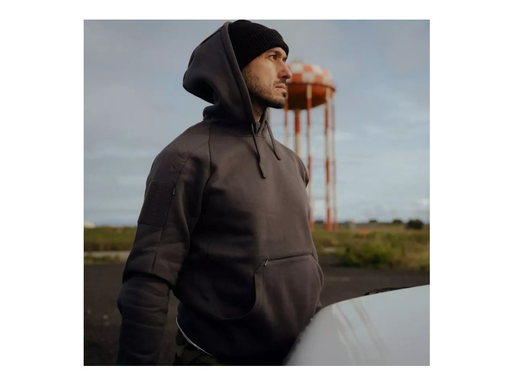 Na ramenou jsou přišity suché zipy, které umožňují snadnou personalizaci mikiny připevněním emblémů nebo nášivek. Mikina je navržena tak, aby chránila před větrem a chladem, s hlubokou kapucí, vysokým límcem a elastickými manžetami a lemem. Je to skutečný městský outfit; všestranný, odolný a připravený k akci.