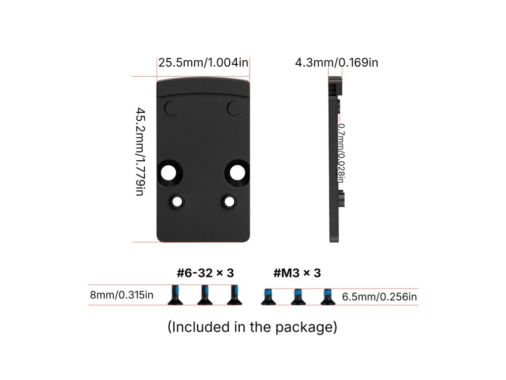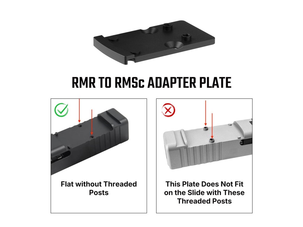 Jedná se o adaptérovou montážní desku, která umožňuje osazení kolimátoru s RMSc footprintem na závěr nebo montáž určenou původně pro RMR footprint.