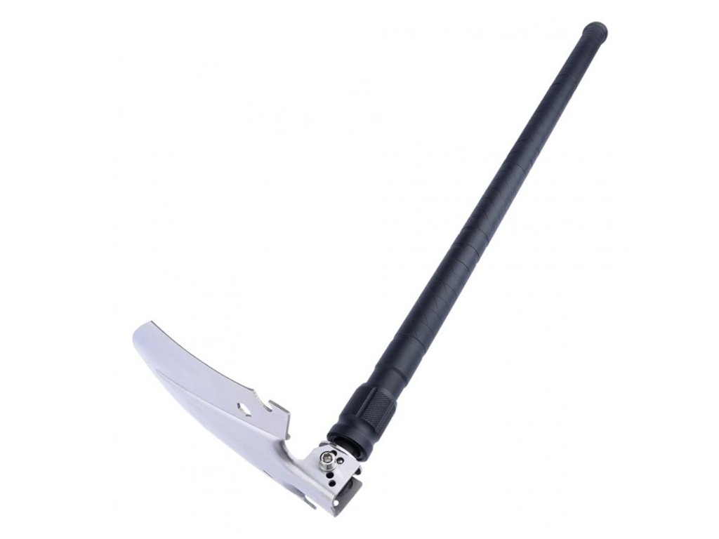 Lopata má tvar štítu, který je 15,8 cm široký a 20 cm dlouhý a může tak pokaždé nabrat více zeminy. Otočením rukojeti uděláte z lopaty motyku, která je ergonomická a šetří námahu díky úhlu 85º a 76 cm dlouhou rukojetí. Pokud upravíte úhel na 30º, pak lze lopatu použít jako hák pro přitažení například větví.