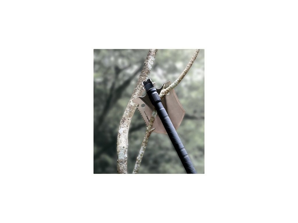 Lopata (kopání), Motyka (přestavením úhlu čepele), Háček (úhel 30°), Pila na větve, Otvírák na láhve, Nožový háček / řezačka lan, Hex klíče, Kompas, Nouzová píšťalka, Křesadlo pro rozdělání ohně, Plochý i křížový šroubovák, Rozbíječ skla z nanokeramiky.