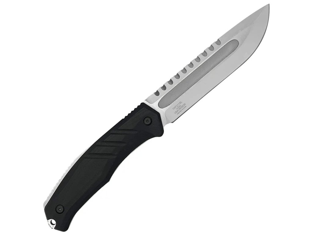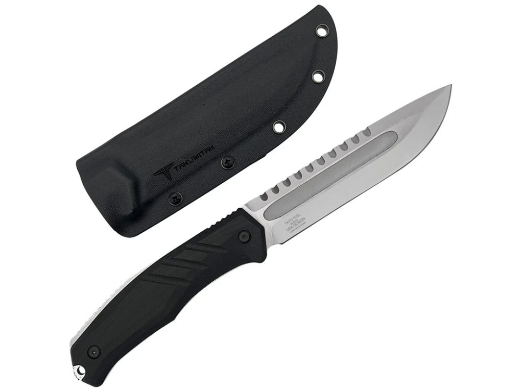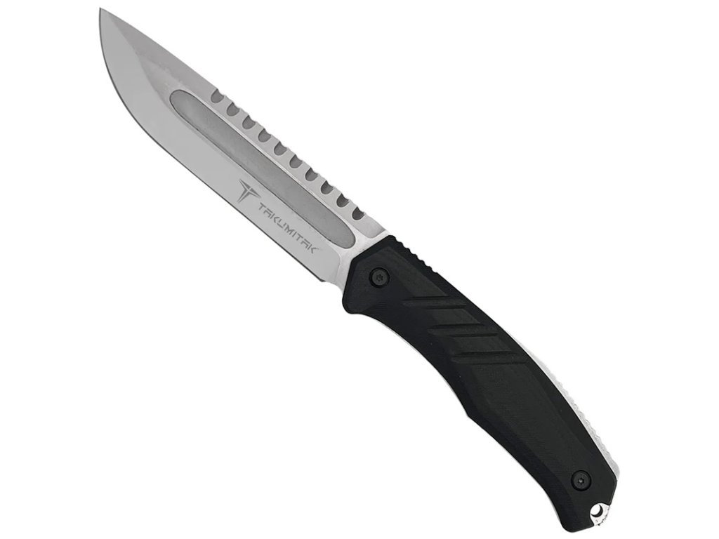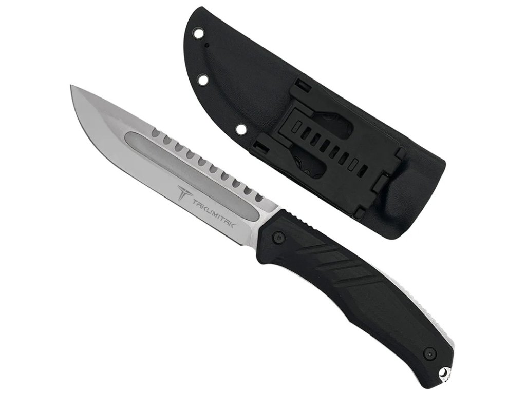 Nože Takumitak Exit Point se vyznačují velmi silnou 4,79 mm CNC obráběnou čepelí Full Tang D2 Steel Drop Point s plochým výbrusem. Třmen je pokryt CNC obráběnými střenkami rukojeti G10 a nůž je vsazen do pouzdra z kydexu, které udržuje tlak. Klip připravený pro systém MOLLE umožňuje vertikální i horizontální nošení a lze jej přepnout pro použití vlevo nebo vpravo.