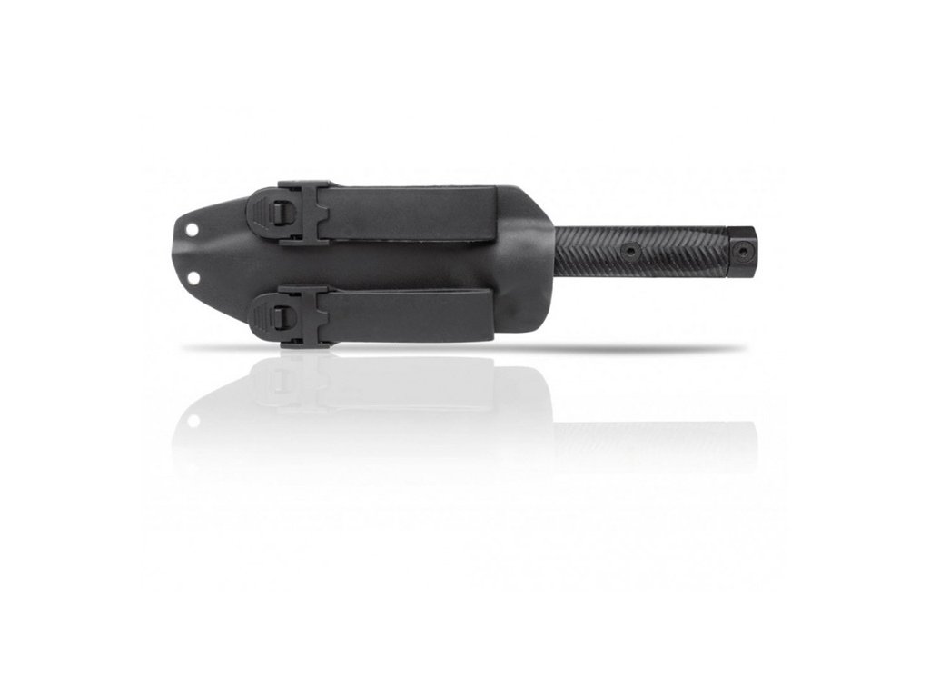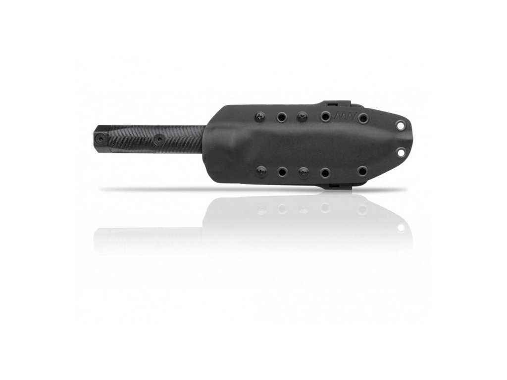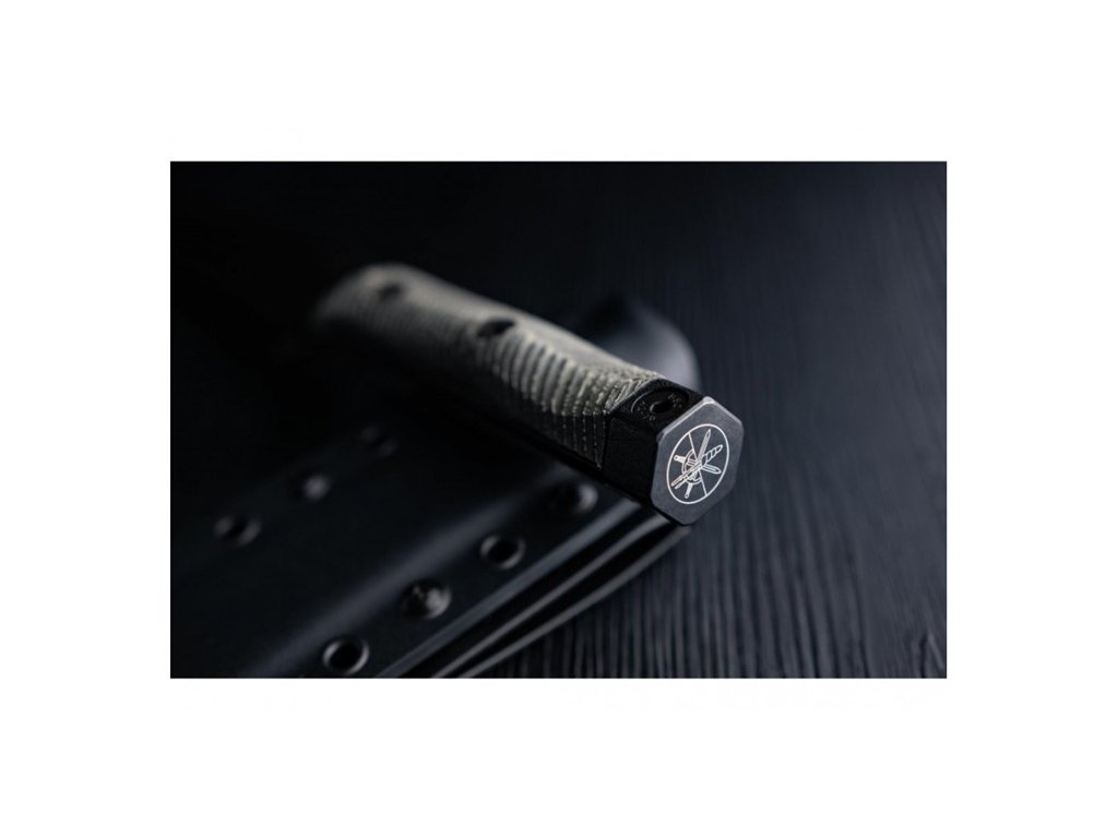 Dále se vyznačuje 3 mm tlustou čepelí z oceli Sleipner. Nůž je vsazen do pouzdra z kydexu. Klip připravený pro systém MOLLE.
