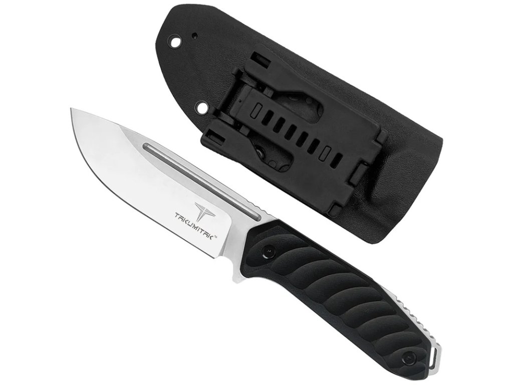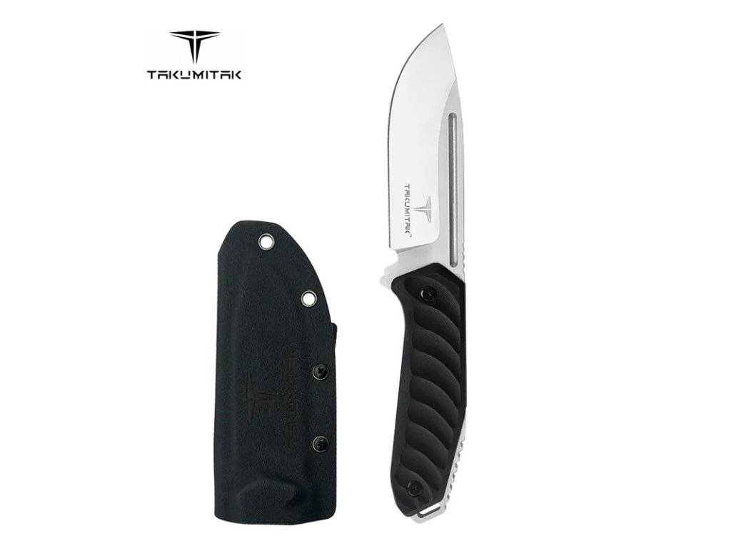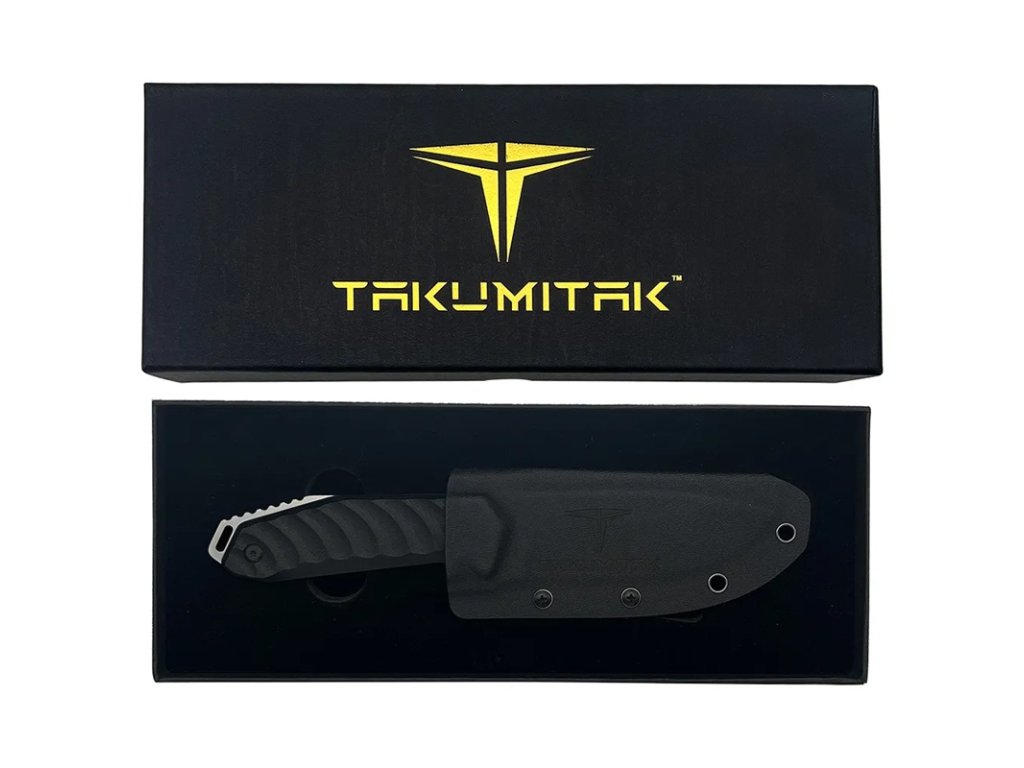 Nože Takumitak Takumi se vyznačují velmi silnou 4,92 mm CNC obráběnou čepelí Full Tang D2 Steel Drop Point s plochým výbrusem. Třmen je pokryt CNC obráběnými střenkami rukojeti G10 a nůž je vsazen do pouzdra z kydexu, které udržuje tlak. Klip připravený pro systém MOLLE umožňuje vertikální i horizontální nošení a lze jej přepnout pro použití vlevo nebo vpravo.