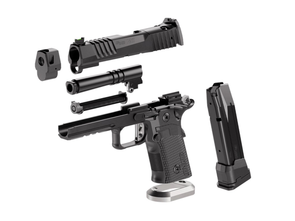 - Vybaveno 1x 23rd a 2x 21rd P320-kompatibilními ocelovými zásobníky.