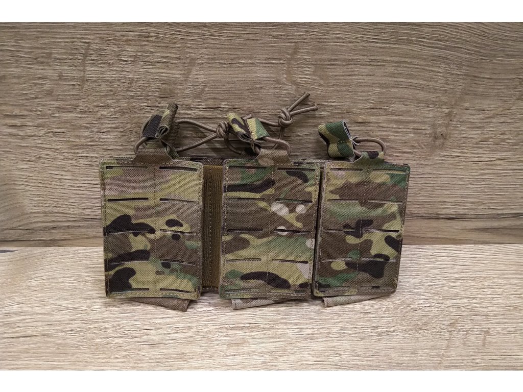Elastické stahovací šňůrky na horní straně jsou optimální pro větší stabilitu zásobníků. Do pouzdra lze uložit zásobníky pro pušky, jako jsou M4, M16 a AR-15, nebo jiné podobné zásobníky.
