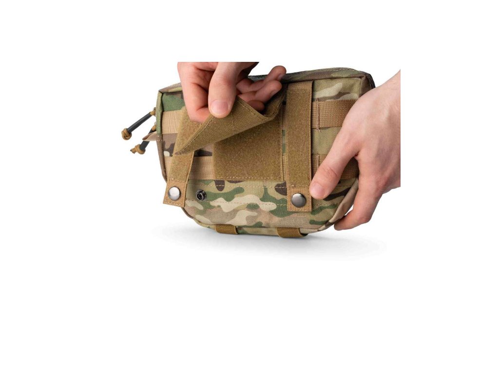Díky promyšlenému uspořádání má brašna BRAVO Utility Pouch hlavní přihrádku se dvěma vnitřními síťovanými kapsami, vnější kapsou a elastickými poutky na stahování pro optimální organizaci. Ať už se jedná o munici, plány misí, mobilní telefony nebo nářadí – vše má své místo. Systém Molle a suchý zip na přední straně umožňují připevnění dalšího vybavení a vlastní nášivky pro personalizaci.