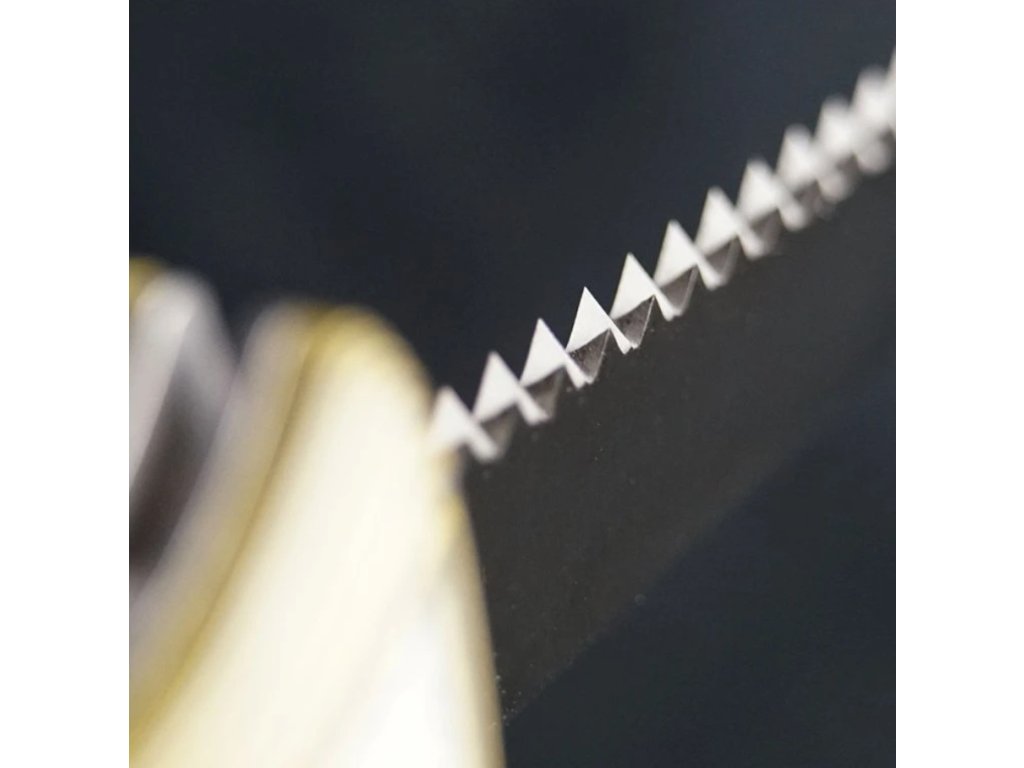 Při manipulaci s nožem vždy postupujte s maximální opatrností. Nesprávné zacházení může způsobit zranění ostrou čepelí nebo zoubkovaným ostřím. Držte nůž mimo dosah prstů a uchopujte jej výhradně za určené části rukojeti. Dávejte pozor na bezpečné použití.