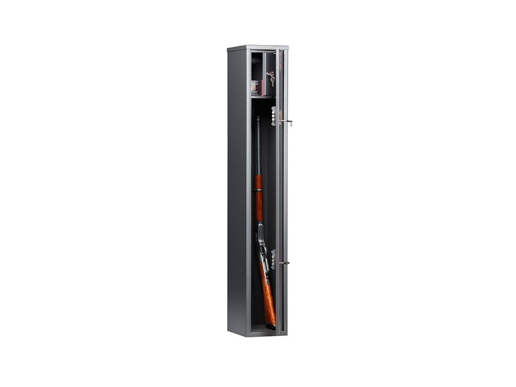 Je ideální pro dlouhé zbraně. Trezor je navržen tak, aby bezpečně uschoval dvě zbraně do výšky 107 cm. Tato skříň je schválena k uschování až dvou zbraní nebo pěti set kusů střeliva. Trezor je bez certifikace.