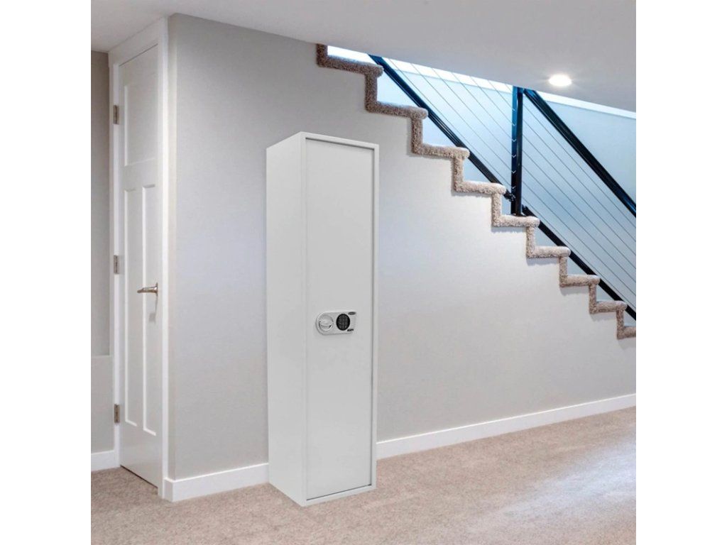 Je ideální pro dlouhé zbraně. Trezor je navržen tak, aby bezpečně uschoval jednu až osm dlouhých zbraní do výšky 141 cm.