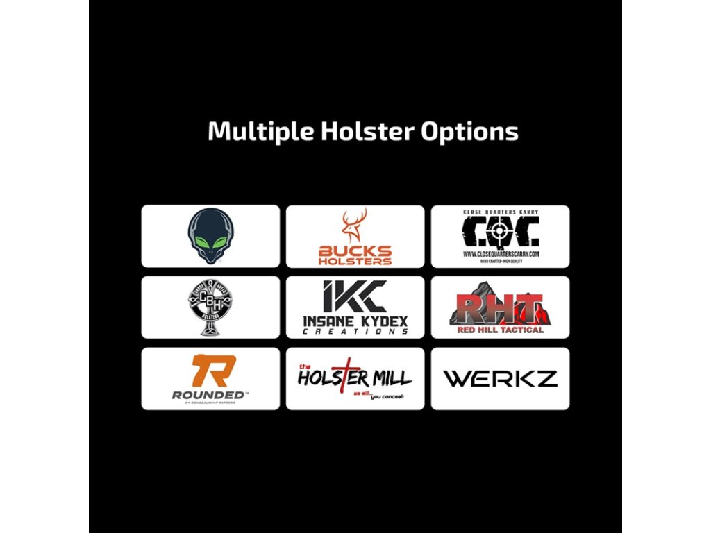 Svítilna je vybavena patentovaným ráčnovým systémem proti uvolnění a vibracím, což umožňuje uchycení na širokou škálu zbraňových lišt. Navrženo pro maximální kompatibilitu a spolehlivost, což zajišťuje, že vaše světlo zůstane přesně tam, kde ho potřebujete. Kompatibilní s lištami 1913 i GL (součástí balení). Kompatibilita s pouzdry: Podpora od mnoha výrobců pouzder.