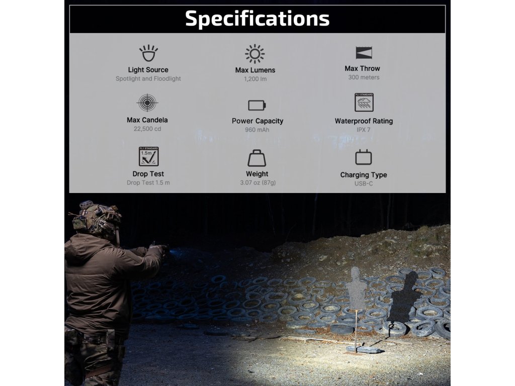 Ano – díky kombinaci vysokého výkonu, odolnosti a USB-C nabíjení je PL-X vhodná jak pro taktické použití, sebeobranu, tak i pro trénink na střelnici či outdoor aktivity.