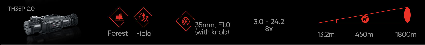 Druhá generace termovizního zaměřovače TH35P přináší kombinaci nejmodernějších technologií a funkcí. Svůj špičkový obraz zajišťuje díky nejnovějšímu termoviznímu jádru s rozlišením 384 x 288 px, hustotou pixelů 12 μm a vynikající teplotní citlivostí <20mK.