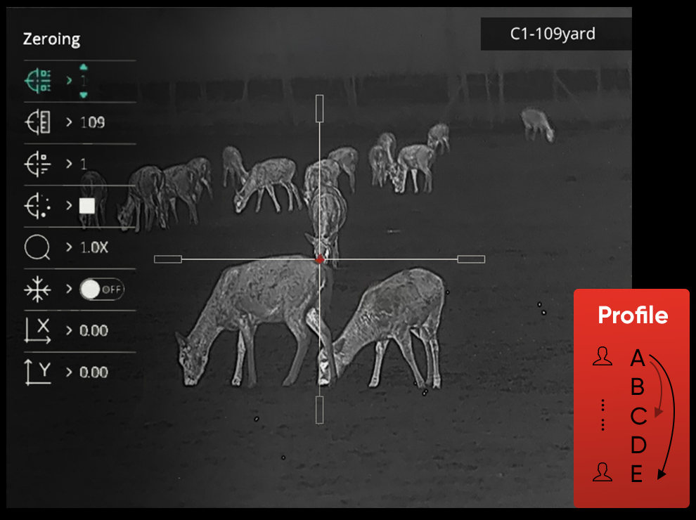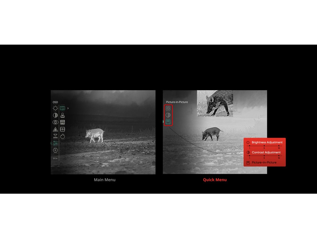 Obraz je zobrazován na prémiovém OLED displeji s rozlišením 1024×768 px, který nabízí možnost výběru barevné palety (černá, červená, bílá či fusion) a jednoho z deseti záměrných křížů. Během pozorování lze pořizovat fotografie nebo nahrávat videa, pro jejichž ukládání slouží vestavěná paměť o kapacitě 16 GB. Zařízení umožňuje uložit až pět balistických profilů, což dovoluje jeho použití na různých zbraních bez potřeby opakovaného nastavování. |