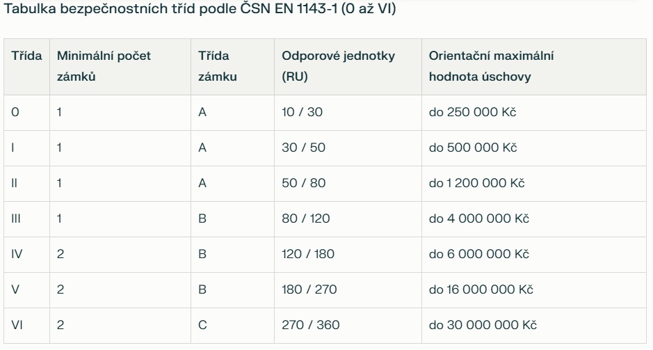 Certifikace: | ČSN EN 1143-1 (min.15 RU), EN 1300 (zámek A), EN 14450 (třída S1) |