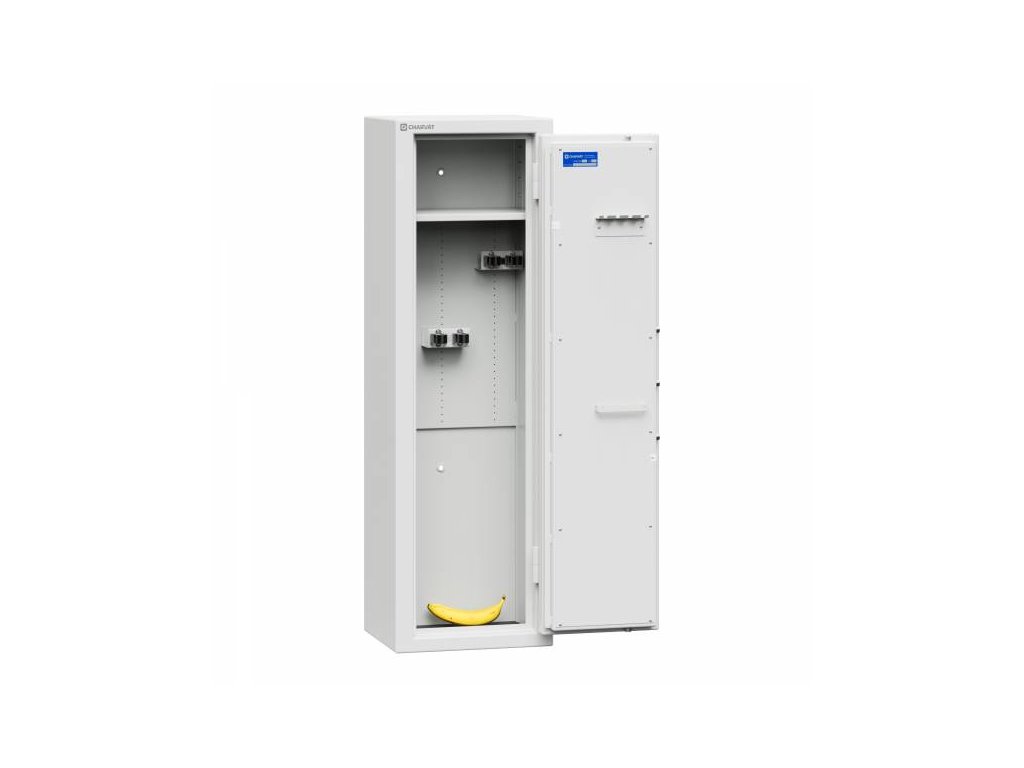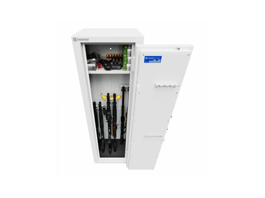 Výškově nastavitelné držáky na zbraně umožňují nezávislé nastavení dvojice úchytů v rozmezí 560 mm. Díky speciálnímu designu jsou předsunuty od zadní stěny, čímž se minimalizuje kontakt puškohledu nebo dalšího taktického příslušenství se stěnou. Bez problémů tak uskladníte odstřelovací pušky, brokovnice i kratší samonabíjecí útočné pušky. V horní části trezoru je výškově nastavitelná police, která má nosnost až 50 kg. Na vnitřní straně dveří je umístěn výrobní štítek s identifikací výrobku a držák na příslušenství (například pro zavěšení čistících šňůr, či jiného vybavení). Měkká podložka na dně trezoru slouží k ochraně pažeb zbraní - zamezuje jejich kontaktu s ocelovým povrchem.